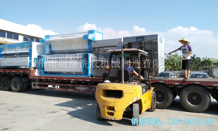 在陽光明媚的天氣下,廣東韶關張總訂購的洗滌廠設備裝車了: